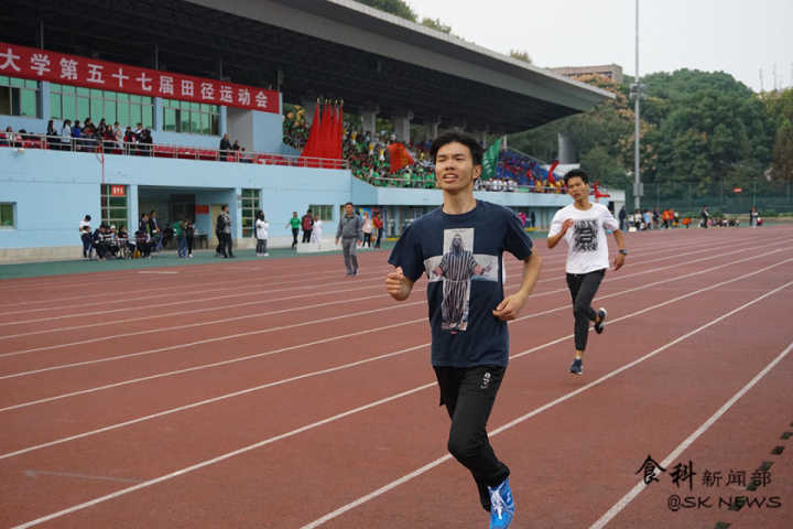 只听一声发令枪响,许正阳似骏马似离弦的箭。在这广阔的赛场上,他比虎猛比豹强。从他踏上跑道的那一刻起,就选择了自信和胜利,演绎着属于食科人的奋斗和拼搏故事。他以轻松的姿态,以王者的风范,始终保持着小组第一的位置,从未被其他对手超越。每当跑至食科院看台,便做出胜利的手势。这令人热血沸腾的一幕,始终回荡在食科人的心中。
