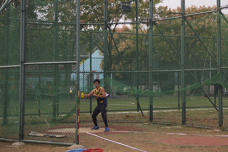 屏气凝神,预摆,旋转,拨饼出手。在观众的掌声与欢呼声中,我院1803班的李梓豪获得男子铁饼比赛第四名的好成绩。