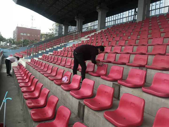 10月18日,英国365上市集团女生部部长周璐瑶和党建主任程晓磊带领两个部门所有副部到二运为明天的校运动会提前打扫观众席。从夕阳西下一直到月至斗牛,此次活动一共持续了3小时。