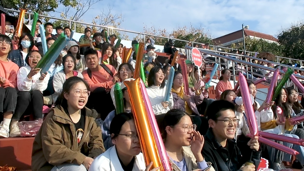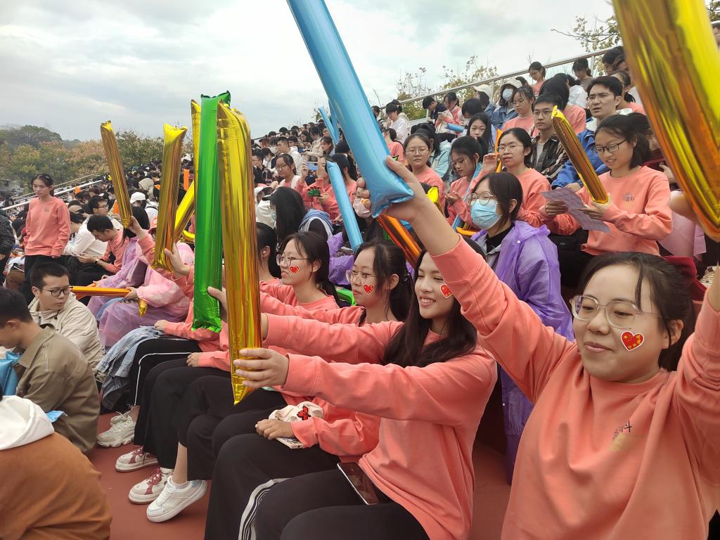 比赛依然还在继续,看台上的同学们还在不断地挥舞着加油棒。风和日丽,阳光正好,比阳光更灿烂的是赛场上运动健儿们的激昂斗志,更是观众席中源源不断的蓬勃热情。食科院,加油。食科院,必胜!