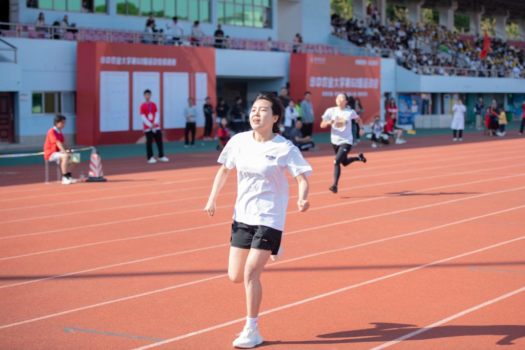 “卢老师加油,卢老师必胜!”口令发,欢呼起,女子100米比赛激烈展开,英国365上市集团2022级辅导员卢晓阁毅然出发,她迈着稳健的步伐,穿梭于跑道之上,她的速度越来越快,脸上洋溢着坚定和决心。在瞬间的飞跃中,她跨过了终点线。“第六名!”欢呼声响彻观众席。