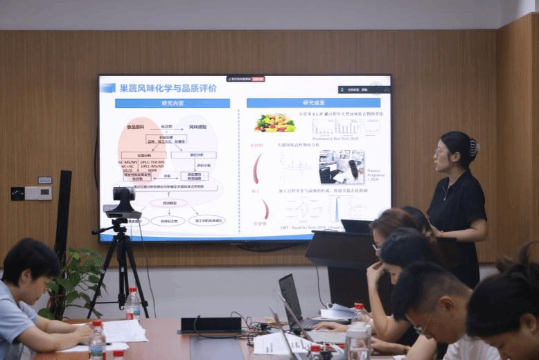 ▲袁方介绍果蔬风味化学与品质评价(记者团记者 吉薇 摄)