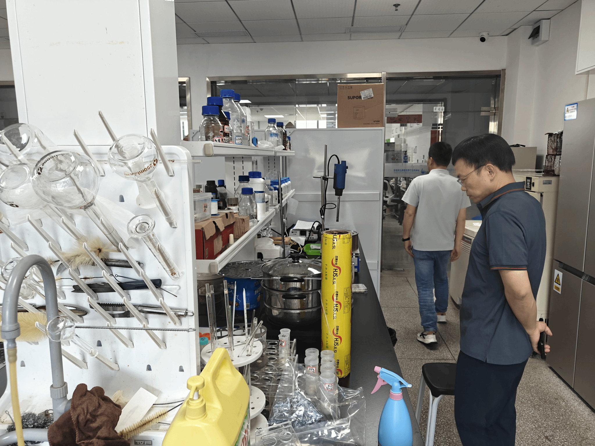 检查组对学院各教学科研实验室进行了细致排查,重点对实验室管理体系、化学试剂储存与使用规范、实验操作流程、用电安全管理、消防通道畅通情况及卫生环境等方面开展专项检查。