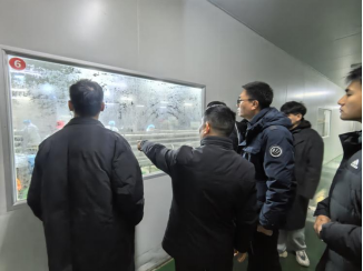 师生党员代表首先前往洪湖大同湖中佳禽谷鹌鹑养殖基地,在企业董事长白从佳的引导下,依次参观养殖棚舍、蛋全自动化生产车间与防疫检测点,实地参观了解鹌鹑养殖环境、饲料投放系统、蛋品分拣包装及粪污资源化利用等环节。研究生党员周小蕾就鹌鹑蛋的贮存运输等事宜向企业负责人进行询问,蔡朝霞教授从食品营养角度引导思考养殖源头对终端食品品质的影响,推动调研与课堂知识深度融合。