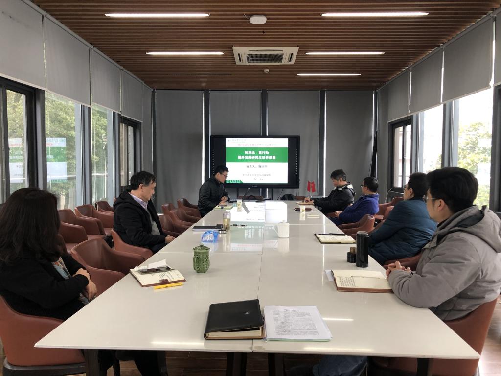陈翊平围绕分类培养、过程管理、教材与课程建设、招生质量提升、国际交流与合作、党建与思想政治教育等6个方面介绍了学院研究生培养工作中需要讨论的问题,提出了具体的推进举措,并就下一步的工作任务制定了时间表。与会领导就以上6方面的主要问题开展了充分讨论。