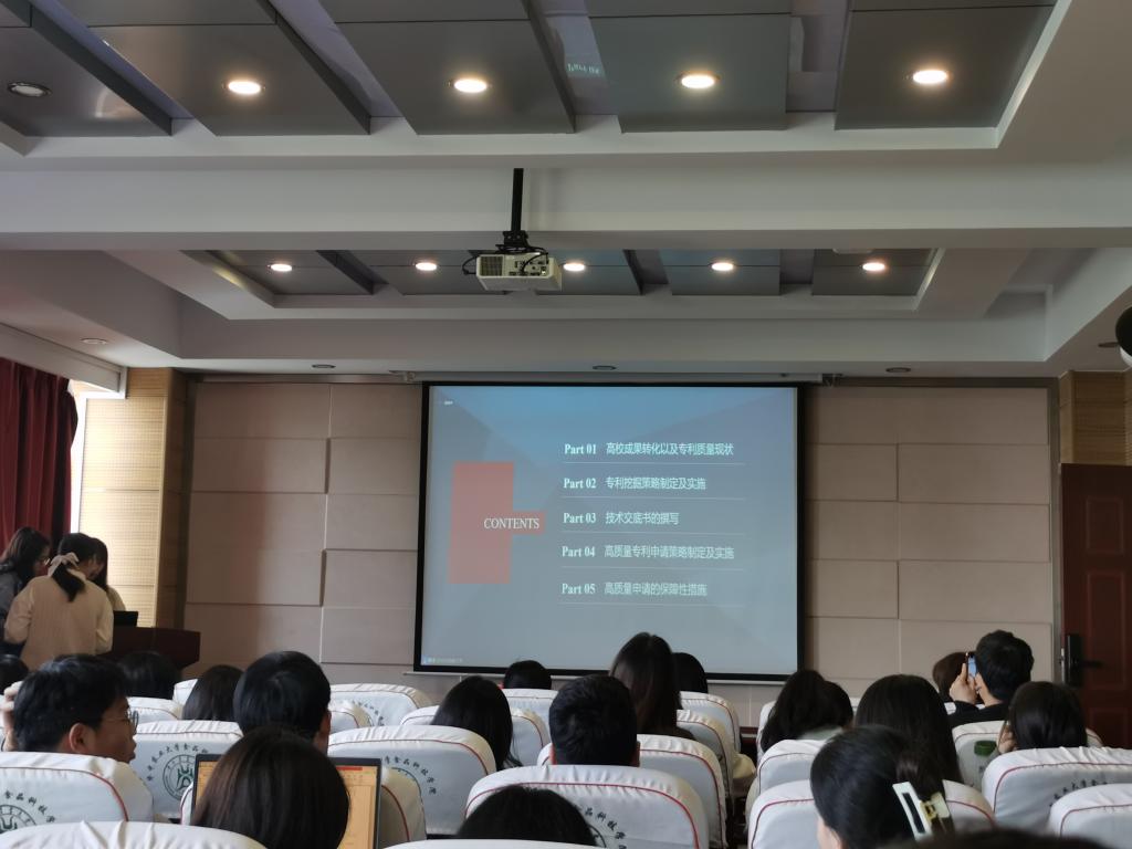 4月9日下午,食科院联合学校图书馆,在食科楼504开展了科研技能培训讲座之“支撑高校成果转化,谈高质量专利挖掘及申请”。讲座围绕当前我国高校研究生教育改革的新发展阶段下,培养专业型、实践型、应用型的人才的改革核心目标,结合目前高校专利成果转化运营率较低的背景,与师生共同探讨了关于高质量专利挖掘、撰写及申请的重难点问题。图书馆副馆长周迪老师、李鹏云老师、食科院副院长陈翊平老师以及150余名食科师生参与了线上和线下的讲座,共同展开交流。