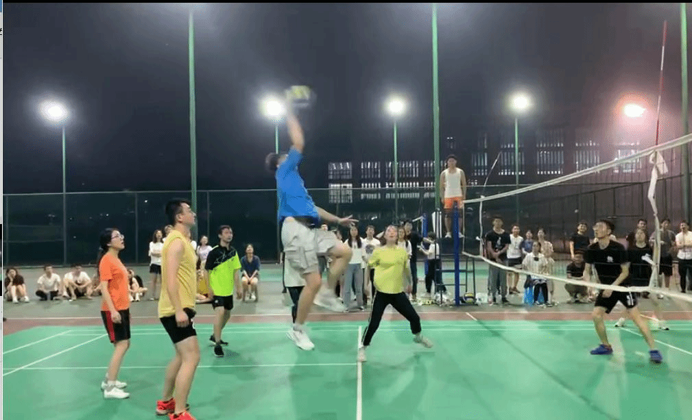 经过一番苦战,最终有四支队伍进入决赛,在决赛中,双方展开了激烈的对决,队员们士气高昂、赛况紧张激烈。发球、接球、传球、跑动、扣杀……每一个细节都展示出队员们精湛的球技,场上的默契配合,场下的动态调整战术部署,把进攻和防守都表现得淋漓尽致。比赛现场选手奋力拼搏、气氛十分热烈,随着比分的交替上升,比赛现场不时响起观众们此起彼伏的加油声,经过紧张而激烈地比拼,“熊霸一队”以23:21的比分险胜“蛋品二队”,夺得本次比赛的冠军。