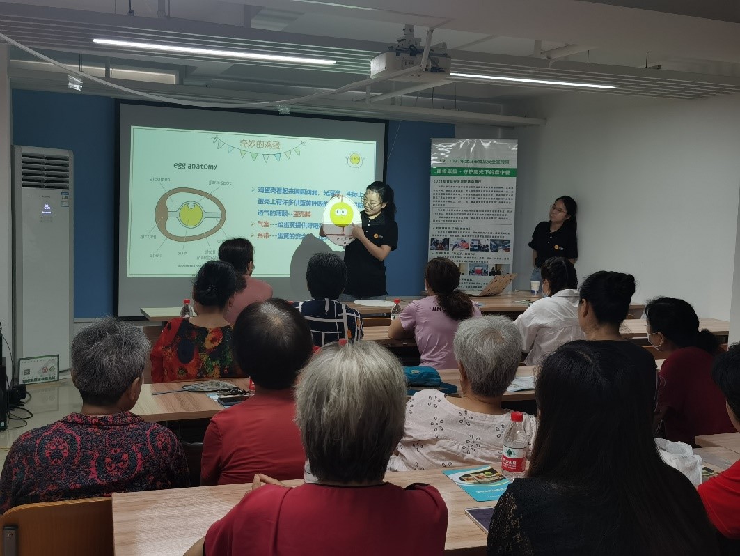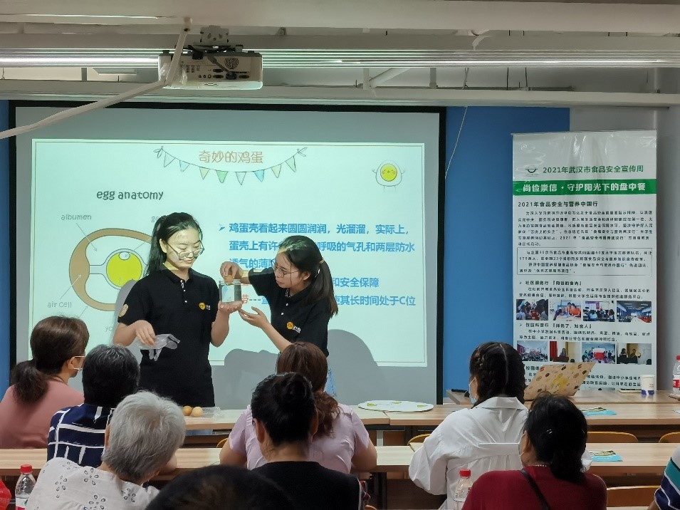 内容提要:“膳食营养怎么吃更健康?”“鸡蛋怎么辨别是否新鲜?”2021年7月20日上午,我院“食品安全与营养中国行”博士团走进武汉市武昌区向阳社区,以鸡蛋为例,围绕高钙低脂饮食开展食品安全与营养科普互动讲堂,随后进行互动答疑及食品安全手册讲解,为居民宣传食品安全科普知识。本次活动由博士团党建负责人李温蓉主持,向阳社区党委副书记肖茜及社区居民到场参加此次互动。