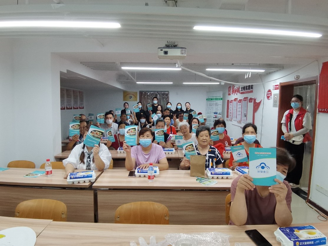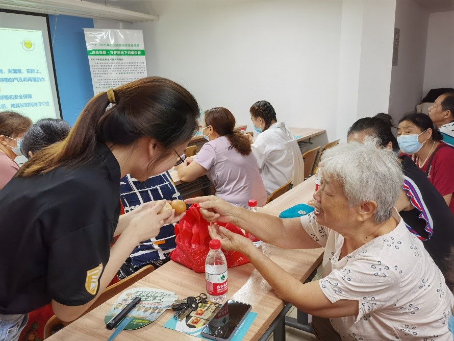 精彩的科普课堂后,我们的志愿者就已讲解的高钙低脂相关知识与居民开展互动问答。“蛋黄是越红越好吗?”“究竟是吃蛋白更好还是吃蛋黄更好呢?”居民们积极回答,交流分享自己的生活经验。在此,志愿者李温蓉提醒大家,应注意鸡蛋的摄入量,一天一个就可以满足我们机体的需要,且最好吃全蛋,若有蛋黄过敏现象,则应根据身体情况作出相应调整。