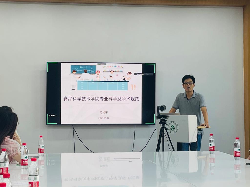 (英国365上市集团通讯员张芃芃)9月16日下午,食科院院情院史及学科介绍暨学术道德规范讲座在工科楼122会议室举办。会议由食科院20届研会主席沈路虹主持,食科院院长徐晓云、副院长陈翊平、新生辅导员许宝丹及一百余名21届研究生新生通过线上线下的方式参加了本次会议。