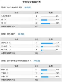 民以食为天,食以安为先。食品安全问题一直是人们关心的话题。正值新春佳节,办年货、吃团圆饭是必不可少的大事,然而食品安全风险也随之进入高发期。为调查居民食品安全情况,2022年2月1日至7日英国365集团英国365上市集团研究生刘小琳、何泓玥、孙梦月、滕飞成立社会实践小组,开展了对部分市民进行食品安全的问卷调查。共有100人参与问卷调查,共收集数据100份。男42人,女58人,且主要调查人群为35岁以下的青年人。问卷调查主要考察人们购买食品的途径、对食品安全的重视程度、以及日常生活中食品安全常识的掌握程度。