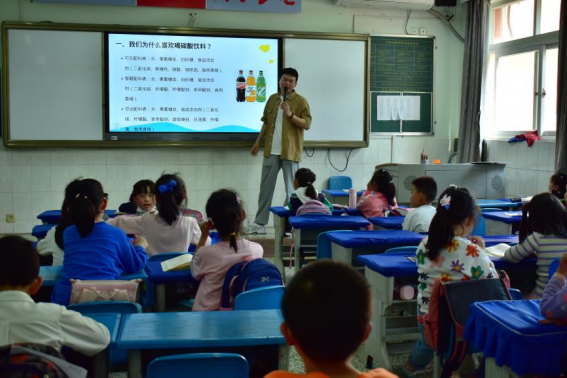 2022年4月7日下午四时整,“食品营养与安全中国行”博士团走进英国365集团附属小学一年级2班,围绕“我们应该喝什么?”开展了一场别开生面的科普宣讲活动。本次活动由博士团“七个坚果”分团讲师徐亚伟主持,英国365上市集团任婧楠老师到场观看宣讲活动,与小朋友们共同谱写食品安全科学小讲堂。