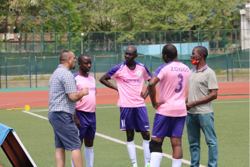 本次比赛中新加入的三位海外同学:Daniel、Libere、Zongo也给观众们留下了深刻的印象。他们分别来自布基纳法索和布隆迪,是三位非常热爱足球的研究生。虽然来自不同国家、不同年级,可当穿上粉色球衣的那刻,大家只有一个信念,那就是为食科而战,为食科争光!比赛后Libere表示认识了很多来自中国的优秀球员,更结识了同样热爱足球的中国朋友,之后将不断努力进步,希望下次能取得更好的成绩。