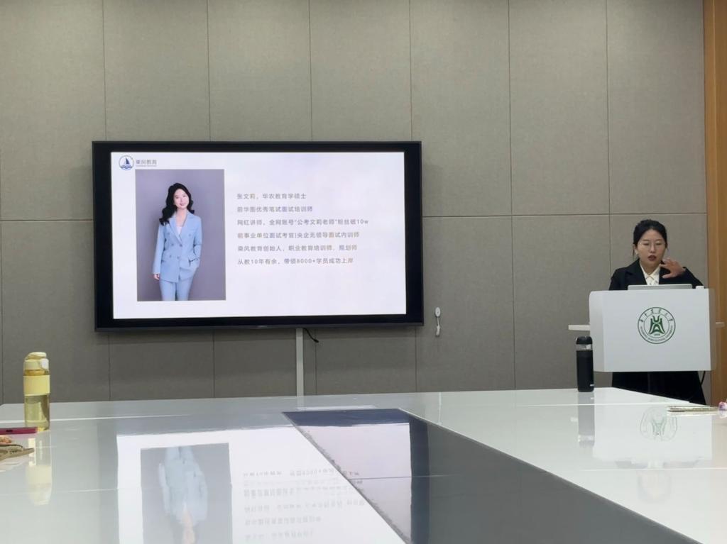 10月25日下午,我院在新工科大楼122会议室成功举办了一场针对武汉市选聘生招考及国考考情的分享会。本次会议特邀乘风教育的公考名师张文莉,为食科院学子深入解析考试内容,提供专业指导。