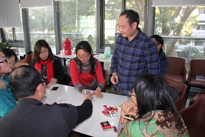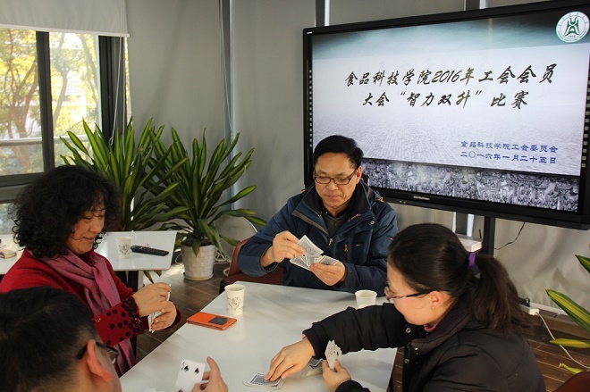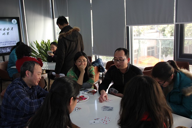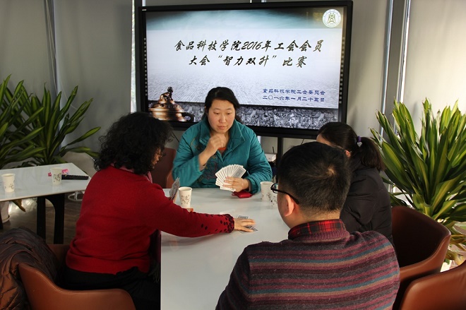 2016年1月25日,我院工会组织会员在院楼阳光房举办了一场“智力双生”比赛。经系内报名、选拔,共十支队进入了上午的淘汰赛环节。经过下午决赛环节,获得前四名的组队依次为:李艳和李小定队,李秀娟和蔡朝霞队,王佳和陈万平队,郭爱玲和吴仁蔚队。