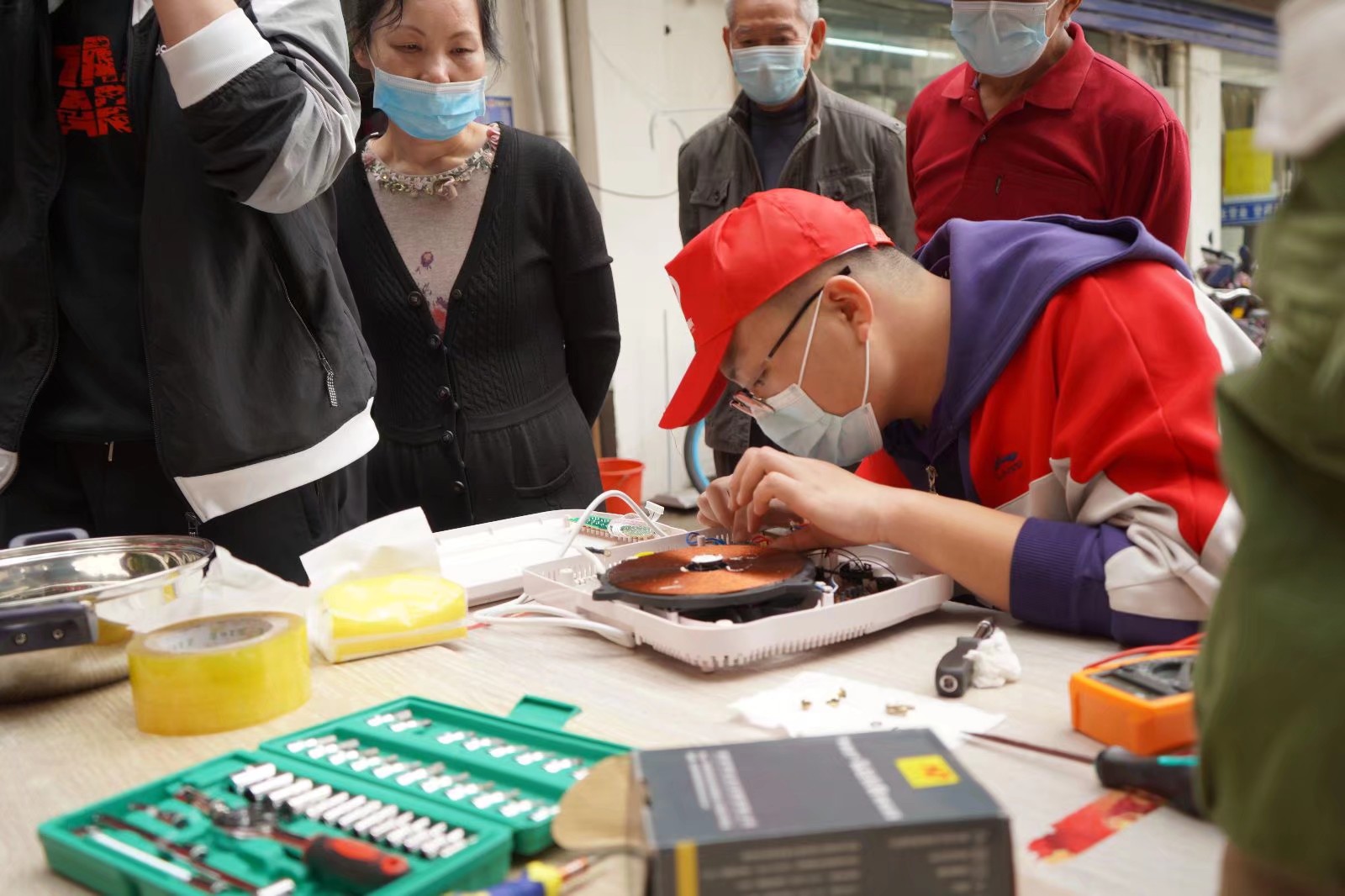 维修小家电活动:2021年4月11日,“食科一家人”志愿服务队联合工学院志愿服务队,至洪山区金鹤园社区进行小家电的维修,开启理论与实践结合的精彩之旅。此次的活动中,志愿者帮助社区居民维修燃气灶、重装老电脑系统等,也认真地说明损坏原因,并给居民提供了维修建议,普及了日常家电使用的注意事项。居民们大赞贴心,活动广受好评。社区的居民还与志愿者分享甘甜的橘子,金鹤园社区居民与大学生志愿者间搭建了温暖和信任的友谊桥梁。