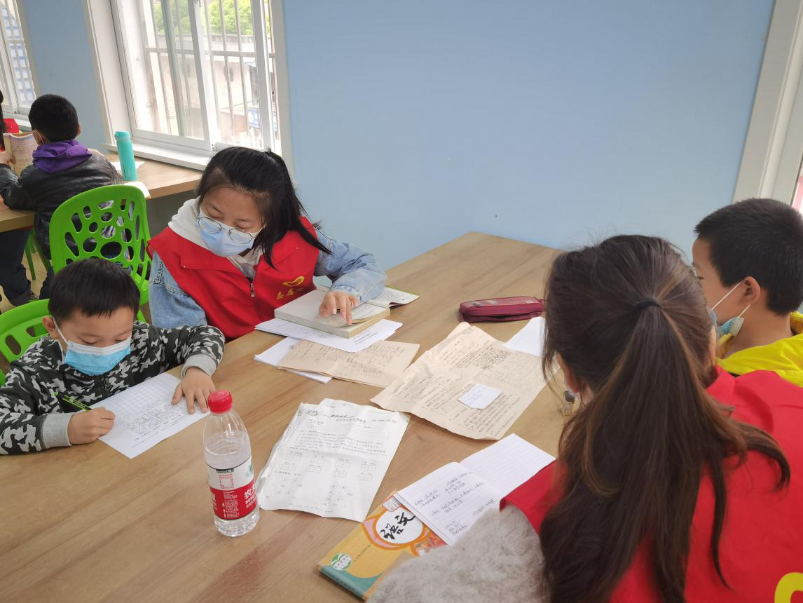 4月24日,志愿服务队组织志愿者们于金鹤园青少年空间对社区小朋友进行线下的课业辅导。在志愿者们的陪伴下,小朋友们积极主动完成作业。此外,他们还在志愿者的带领下一起学习党史。在知识竞答环节中,他们积极回答,而这也让他们对国家的基本知识有所了解。课内知识的巩固和课外知识的积累,给小朋友们带来了充实美好的周末时光。